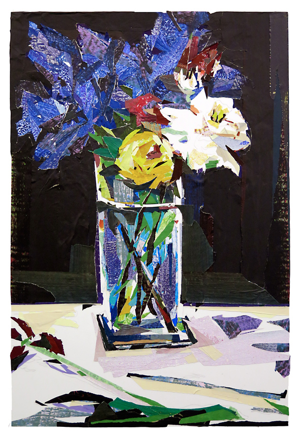 bouquet (blumen in einer kristallvase)_68 x 45 cm_acrylic, tape, varnish, board_2017